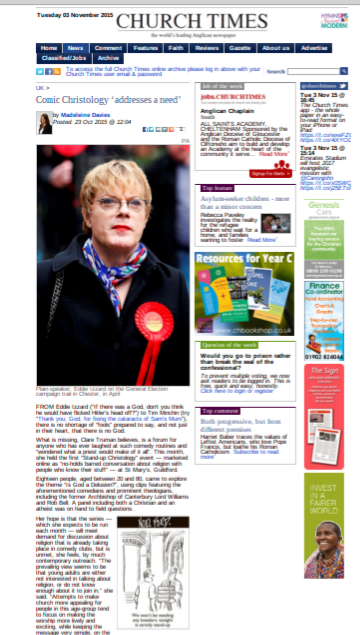 An article about our first Stand-Up Christology event: Is God a Delusion? appeared in the Church Times on the 23rd October.
